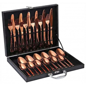 Mug metálico color cobre electro-plateado. Presentación en bolsa plástica dentro de caja de cartón negra.